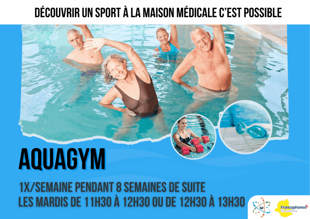 Le rôle de l’aquagym est de fortifier le système cardio-vasculaire et de renforcer la musculature en douceur. Ici, pas d’impact au sol, les risques de blessures sont minimes en évoluant dans un milieu aquatique. Si vous êtes sujet aux blessures, dispensé ou avez été dispensé de sport à impact pendant quelques mois, cette activité offre une belle occasion de rester ou redevenir actif. En tant que sportif occasionnel, l’aquagym est un bon moyen de se dépenser physiquement dans un objectif de renforcement musculaire ou de perte de poids. L’aquagym est un sport d’entretien qui aidera à garder ou à retrouver la forme. Il n’est pas nécessaire de savoir nager.