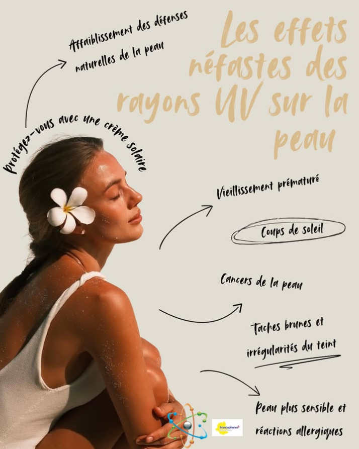 - Cancer de la peau : Les rayons UV peuvent causer le cancer de la peau, y compris le mélanome, qui est très dangereux.